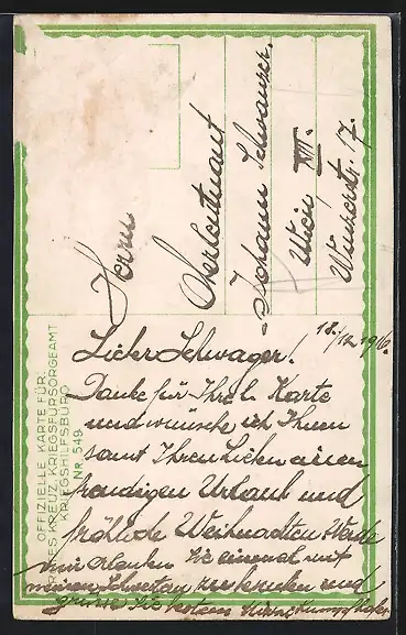 alte Ansichtskarte, gelaufen, Stempelspur, Briefmarke entfernt, rückseitig Oberflächenschaden
