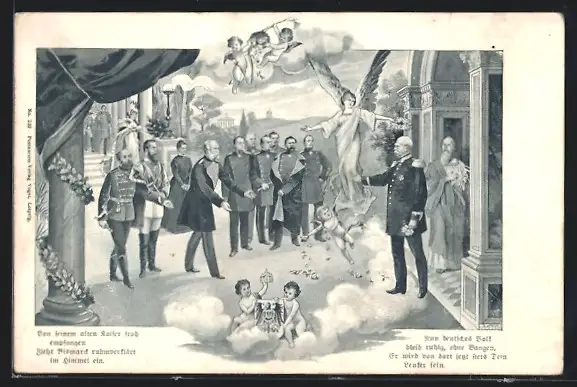 AK Kaiser Wilhelm I. begrüsst Bismarck zusammen mit anderen Generälen