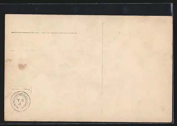 Personenbezogene Daten auf der Rückseite der Karte wurden durch blauen Textmarker unkenntlich gemacht. Die blauen Stellen sind auf die Vorderseite durchgeweicht und wirken sich negativ auf das Postkartenfoto aus
