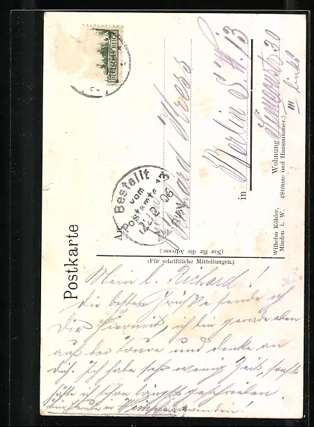 alte Ansichtskarte, gelaufen 1906, Briefmarke entfernt, guter Zustand