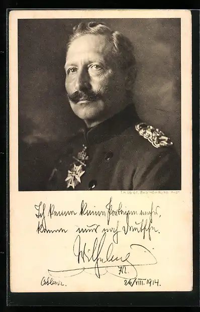 AK Kaiser Wilhelm II. in Uniform mit Orden, Text, 1914