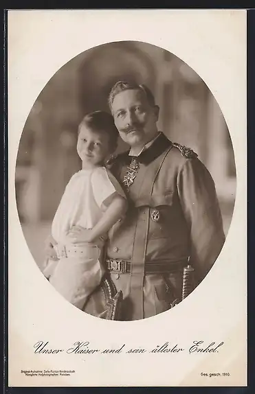 AK Kaiser Wilhelm II. in Uniform mit Orden hält seinen ältesten Enkel im Arm