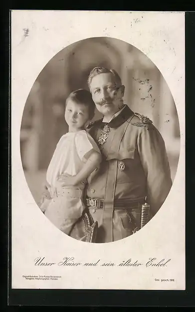 AK Kaiser Wilhelm II. in Uniform mit Orden umarmt seinen ältesten Enkel