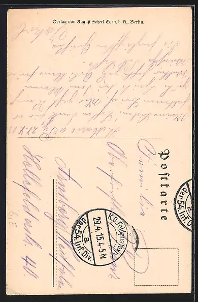 alte Ansichtskarte, gelaufen 1915, Stempelspur, guter Zustand