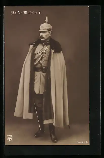 AK Kaiser Wilhelm II. in Uniform mit Pickelhaube und Mantel