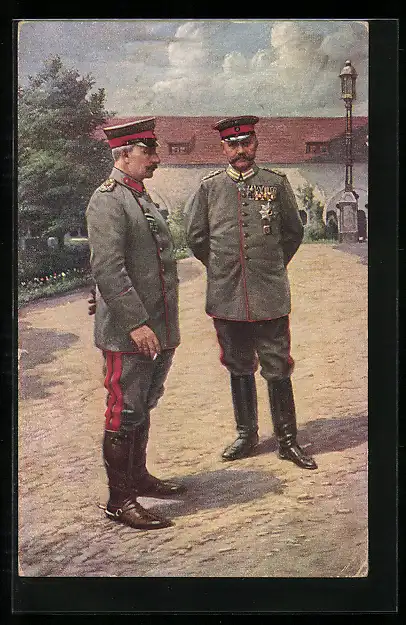 AK Kaiser Wilhelm II. in Uniform mit verschränkten Armen nebst Generalfeldmarschall v.Hindenburg