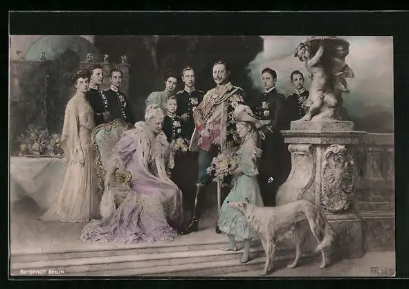 AK Kaiser Wilhelm II. inmitten seiner Familie, koloriert