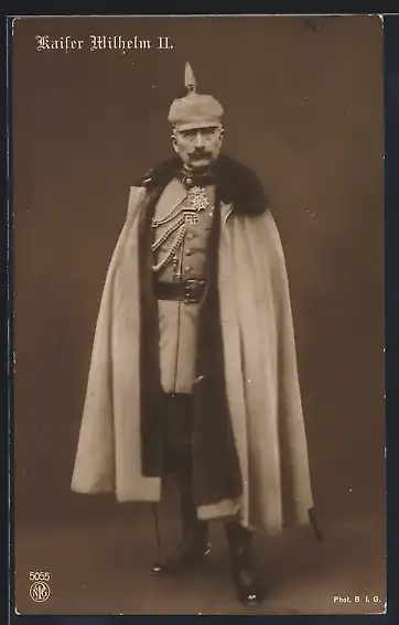 AK Kaiser Wilhelm II. mit Umhang in Uniform und Pickelhaube
