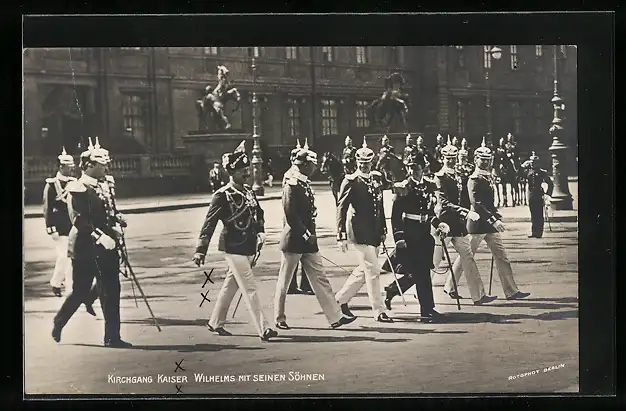 AK Kaiser Wilhelm II. mit seinen Söhnen beim Kirchgang