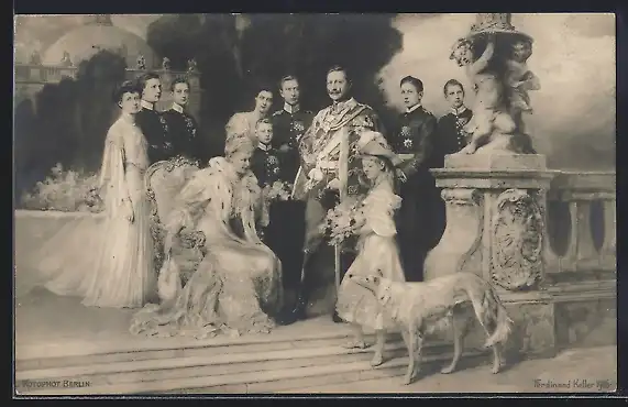 AK Kaiser Wilhelm II. von Preussen mit Familie und Windhund