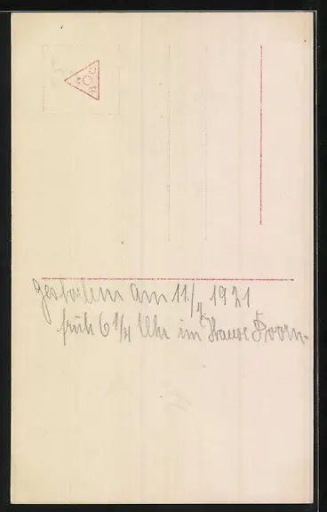 Personenbezogene Daten auf der Rückseite der Karte wurden durch blauen Textmarker unkenntlich gemacht. Die blauen Stellen sind auf die Vorderseite durchgeweicht und wirken sich negativ auf das Postkartenfoto aus