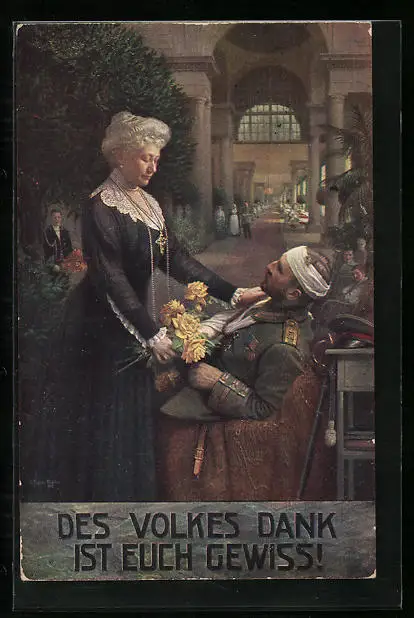 AK Kaiserin Auguste Victoria und verwundeter Soldat