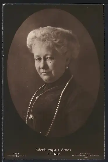 AK Kaiserin Auguste Victoria von Preussen mit Perlenkette und Brosche