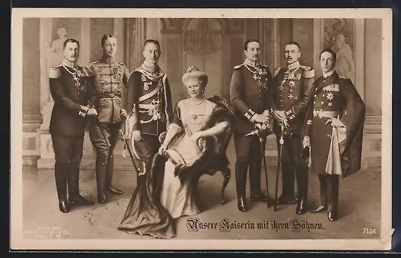 AK Kaiserin Auguste Victoria von Preussen mit ihrem Söhnen