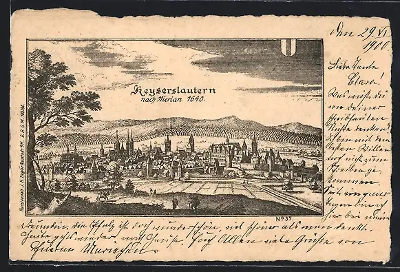 AK Kaiserslautern, Ortsansicht nach Merian 1640
