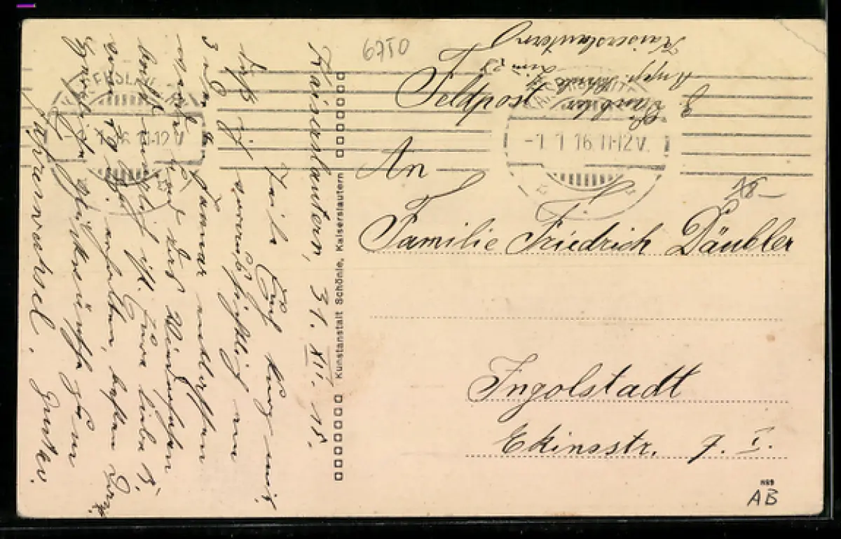 gelaufen 1916, Eckknick oben links, Stempelspur, guter Zustand