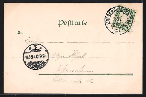 alte Ansichtskarte, gelaufen 1900, guter Zustand