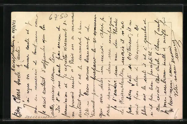 Personenbezogene Daten auf der Rückseite der Karte wurden durch blauen Textmarker unkenntlich gemacht. Die blauen Stellen sind auf die Vorderseite durchgeweicht und wirken sich negativ auf das Postkartenfoto aus
