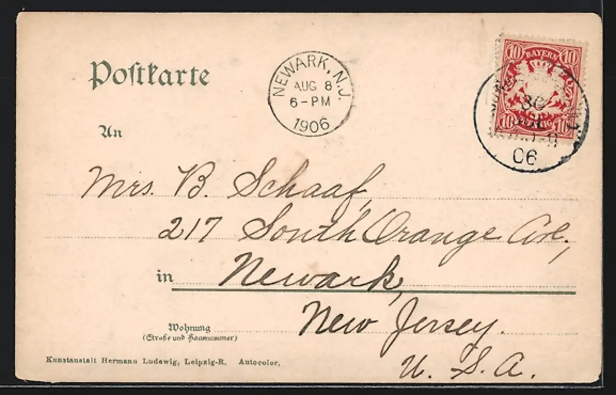 alte Ansichtskarte, gelaufen 1906, Stempelspur, guter Zustand