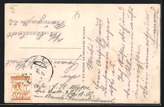 alte Ansichtskarte, gelaufen, minimaler Einriss oben mittig, guter Zustand