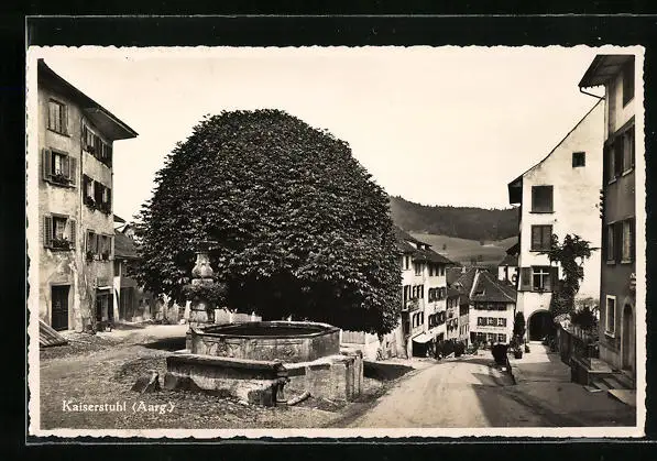 AK Kaiserstuhl, am Brunnen und Blick auf die Stadthäuser