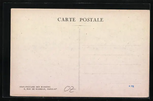Personenbezogene Daten auf der Rückseite der Karte wurden durch blauen Textmarker unkenntlich gemacht. Die blauen Stellen sind auf die Vorderseite durchgeweicht und wirken sich negativ auf das Postkartenfoto aus