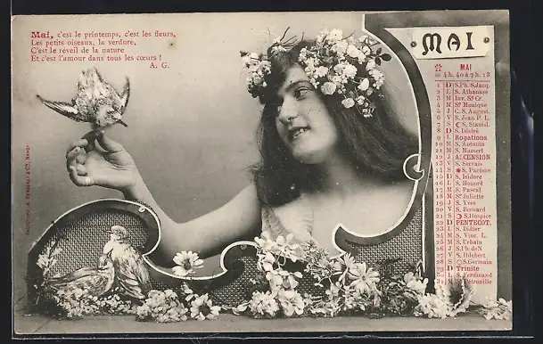 AK Kalender, Mai c'est le printemps, c'est les fleurs...