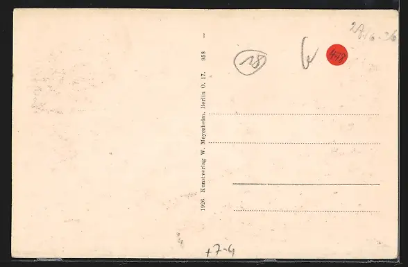 Personenbezogene Daten auf der Rückseite der Karte wurden durch blauen Textmarker unkenntlich gemacht. Die blauen Stellen sind auf die Vorderseite durchgeweicht und wirken sich negativ auf das Postkartenfoto aus