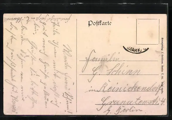 alte Ansichtskarte, gelaufen, Briefmarke entfernt, guter Zustand