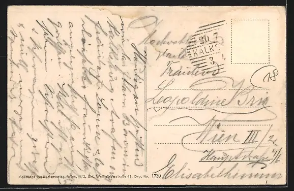 alte Ansichtskarte, gelaufen, Briefmarke entfernt, guter Zustand