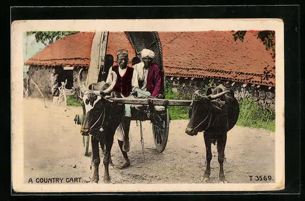 AK Kalkutta, Zwei Männer auf Rinder-Gespann