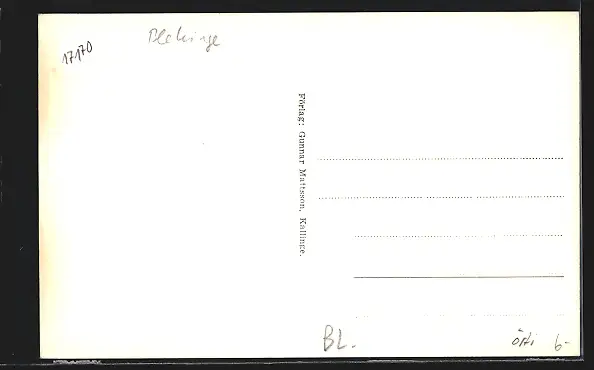 Personenbezogene Daten auf der Rückseite der Karte wurden durch blauen Textmarker unkenntlich gemacht. Die blauen Stellen sind auf die Vorderseite durchgeweicht und wirken sich negativ auf das Postkartenfoto aus
