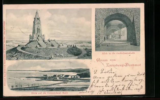 AK Kalö /Ostsee, Knivsberg-Denkmal, Blick in die Gedächtnishalle, Strand