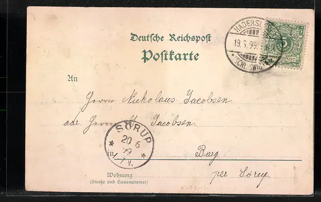 alte Ansichtskarte, gelaufen 1899, Eckknick li. unten, guter Zustand