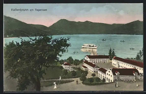AK Kaltenbrunn am Tegernsee, Uferpartie mit Dampfer