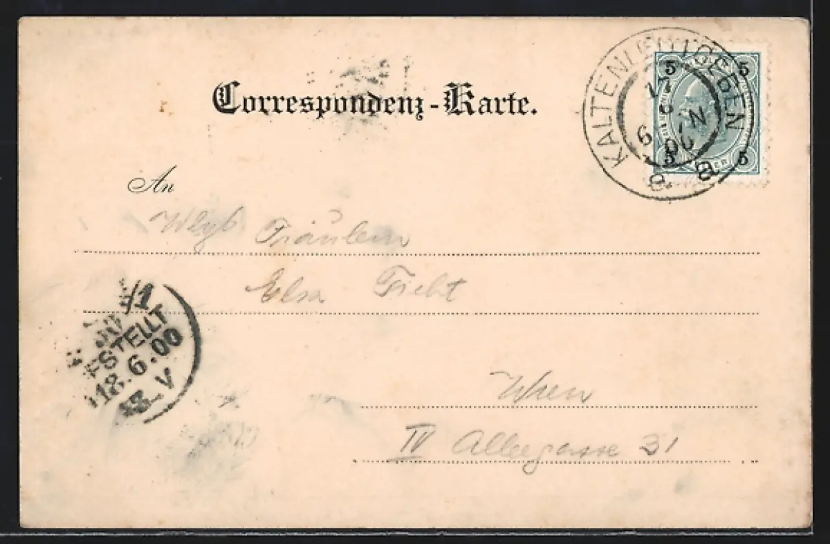 alte Ansichtskarte, gelaufen 1900, guter Zustand