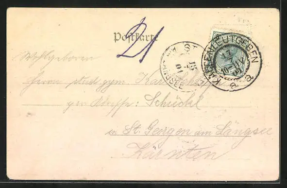 gelaufen 1901, Eckknicke links u. rechts oben, guter Zustand