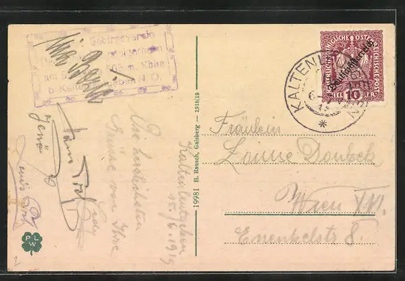 gelaufen 1919, Eckknick links unten, guter Zustand