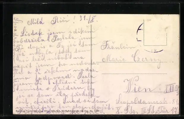 alte Ansichtskarte, gelaufen, Briefmarke entfernt, rückseitig Oberflächenschaden, guter Zustand