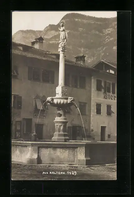 AK Kaltern, Marktbrunnen mit Gnadenmutter