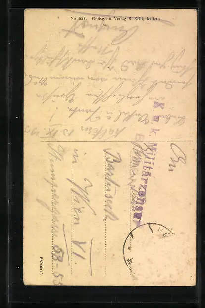 gelaufen 1915, Briefmarke entfernt, Stecknadelloch oben mittig, guter Zustand
