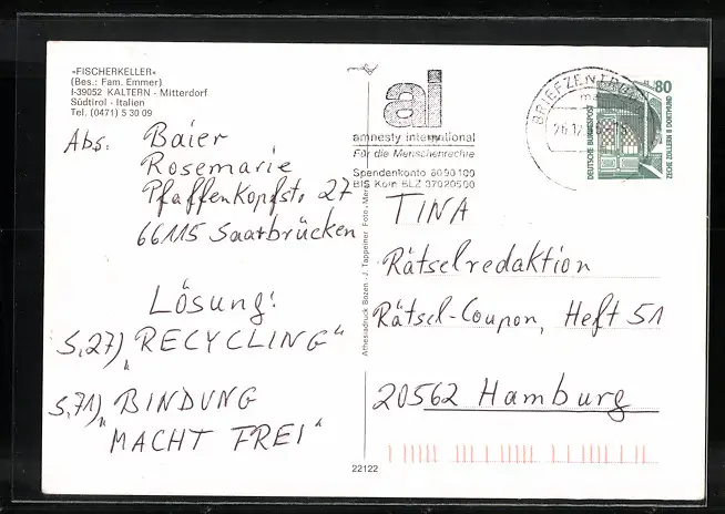 alte Ansichtskarte, gelaufen 1996, guter Zustand