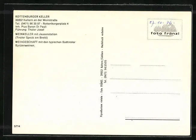 AK Kaltern, Rottenburger Keller mit Weinschänke