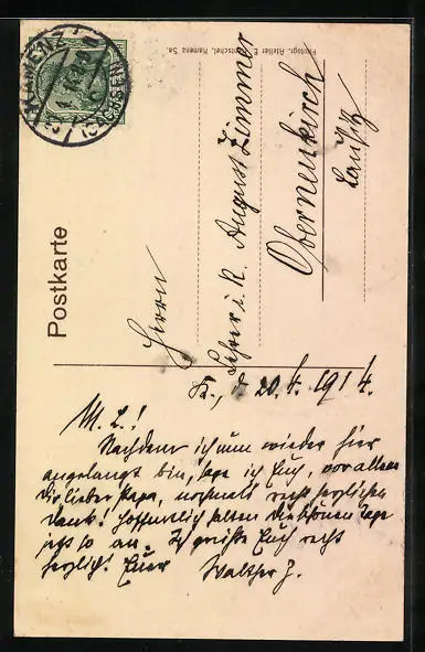 alte Ansichtskarte, gelaufen 1914, Stempelspur, guter Zustand
