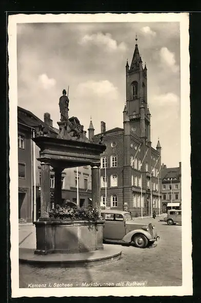 AK Kamenz i. Sa., Marktbrunnen mit Rathaus