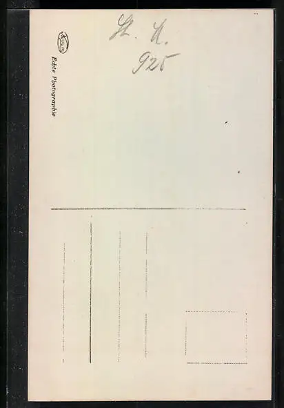 Personenbezogene Daten auf der Rückseite der Karte wurden durch blauen Textmarker unkenntlich gemacht. Die blauen Stellen sind auf die Vorderseite durchgeweicht und wirken sich negativ auf das Postkartenfoto aus