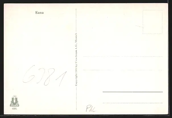 Personenbezogene Daten auf der Rückseite der Karte wurden durch blauen Textmarker unkenntlich gemacht. Die blauen Stellen sind auf die Vorderseite durchgeweicht und wirken sich negativ auf das Postkartenfoto aus