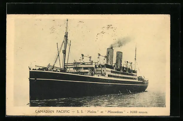 AK Kanadisches Passagierschiff SS Melita in der Bugansicht