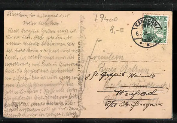 alte Ansichtskarte, gelaufen 1925, guter Zustand