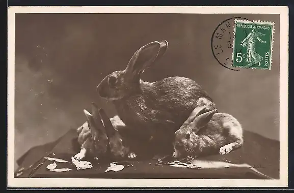 AK Kaninchen mit Jungtieren